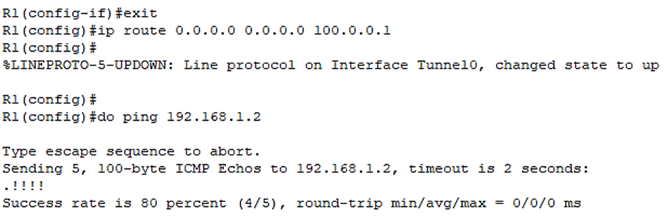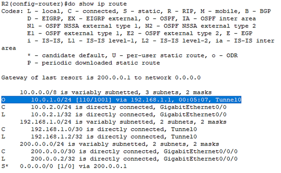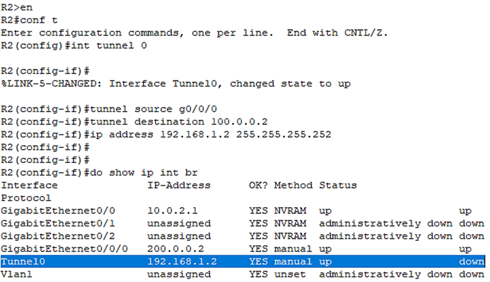Tunnel destination (this time it will be the IP address of R1’s WAN interface, 100.0.0.2):