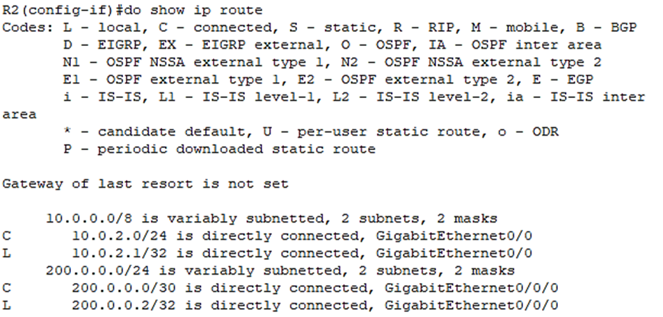 The reason for that is that we also have to configure a route on R1 to 200.0.0.2