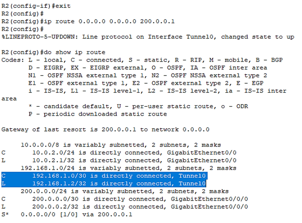 R2(config)#ip route, 0.0.0.0 0.0.0.0 200.0.0.1