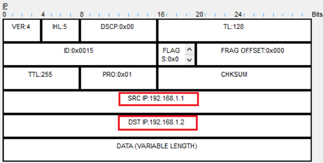 Then above that we see that the ICMP is encapsulated with an IP Header, which shows the source 192.168.1.1 and destination 192.168.1.2.