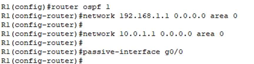 And we’ll make g0/0 a passive interface since there are no neighbors connected to it: