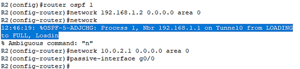 The second part of this lab is to “Configure OSPF on the tunnel interfaces of R1 and R2, to allow PC1 and PC2 to communicate.