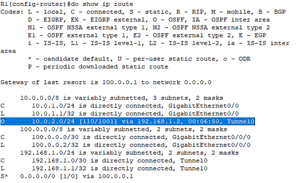 If R2 doesn’t know how to get to 100.0.0.2, it can’t build a GRE tunnel to 100.0.0.2.